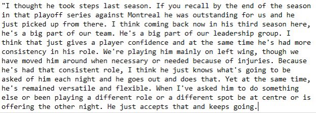 Sheldon Keefe often praises Kerfoot for his ability to be flexible and to play in different roles when called upon. He also talks about his consistency in said roles. Something that occasionally goes unnoticed during games. It’s no secret that Keefe sees Kerfoot as an asset to this team. As he should.