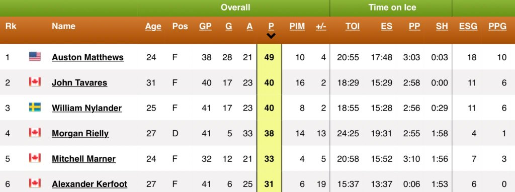 So when will Alex Kerfoot get the respect he deserves? While I realize that Kerfoot is having an impressive season on a line with Tavares and Nylander, I also realize that Tavares and Nylander are having impressive seasons on a line with Kerfoot. All three players compliment each other nicely and make the team harder to play against. There’s no question about that. At the half way point of the season, Kerfoot is ranked sixth on the team in points. An impressive feat on a team full of big names. Matthews, Marner, Tavares, Nylander, Rielly, to name a few. Those are currently the only players with more points than Kerfoot. Let that sink in.